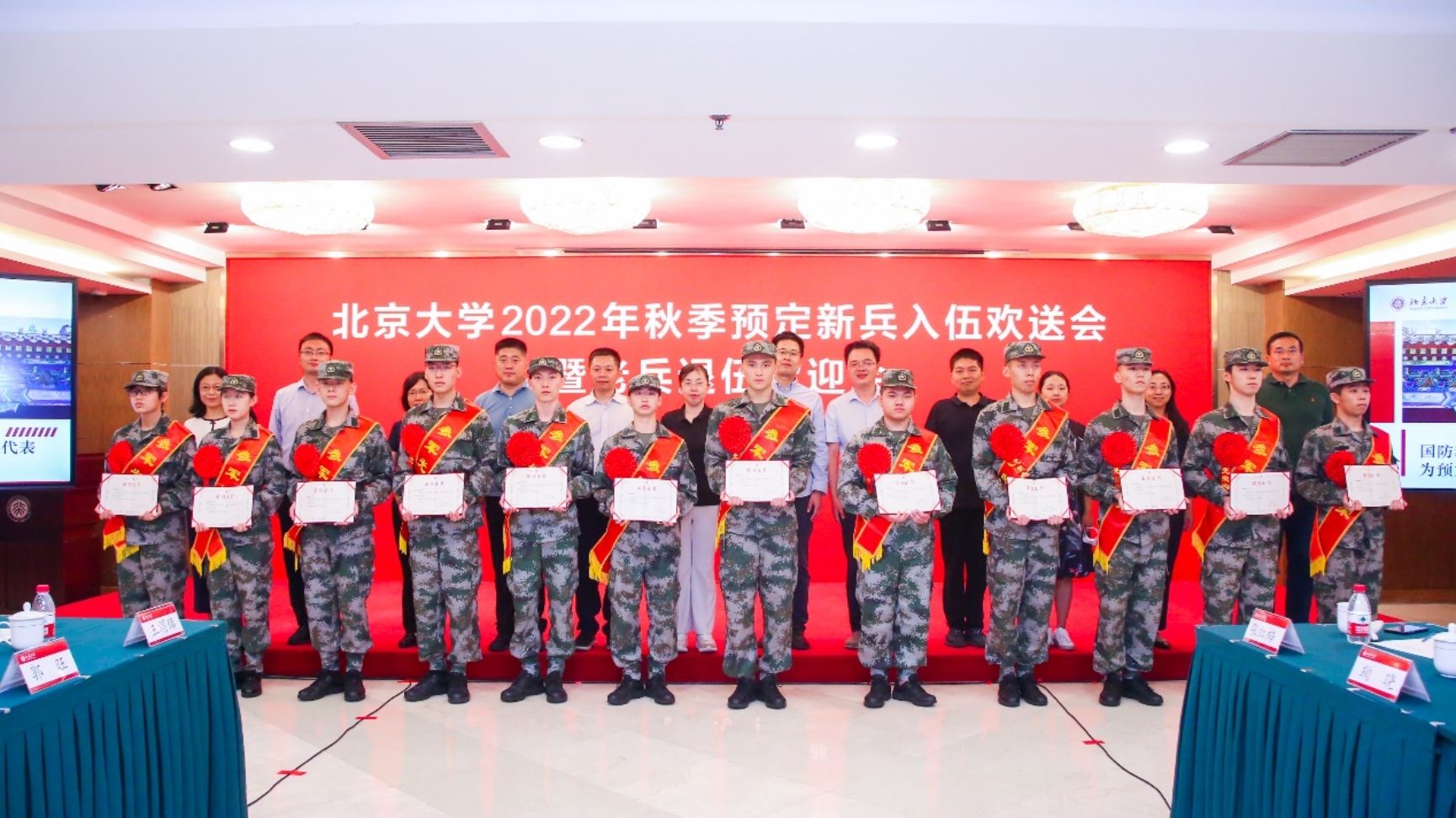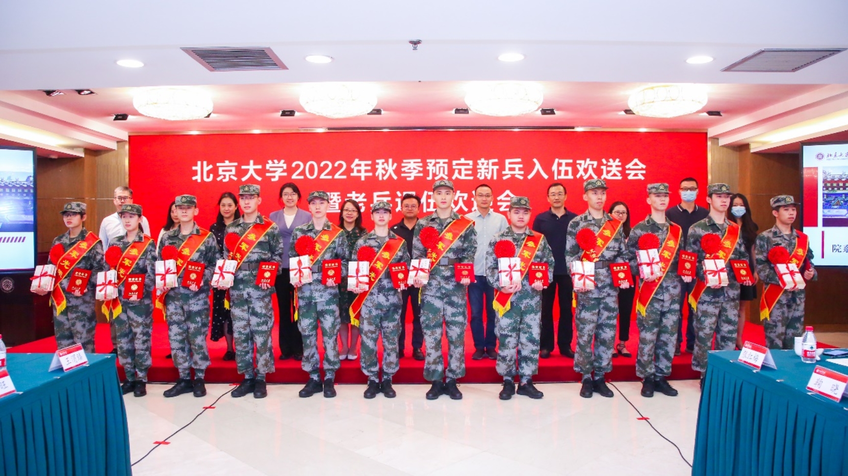 医学部学生工作部人民武装部部长丁磊宣读了2022年秋季预定入伍新兵名单和退伍老兵名单,全体预定新兵和退伍老兵高声答“到”,起立敬礼,以庄严的神情和饱满的精神面貌展示着昂扬的北大情怀与军旅精神。
